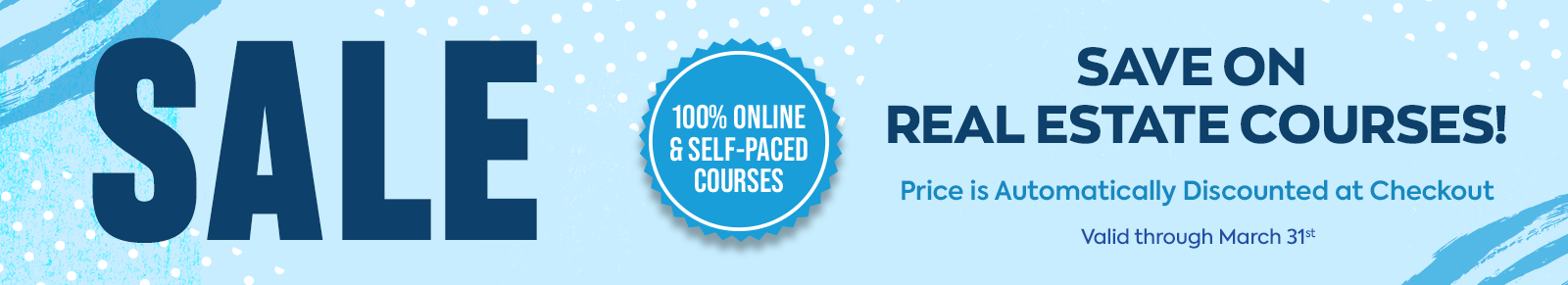 Your satisfaction is our top priority. We take our commitment to providing quality real estate education seriously. If you are not satisfied with our courses for any reason, we will offer you a full refund if the request is submitted within 30 days of purchase and the course (or any individual course within a package) is not more than 50% completed. You can sign up for our courses with confidence!